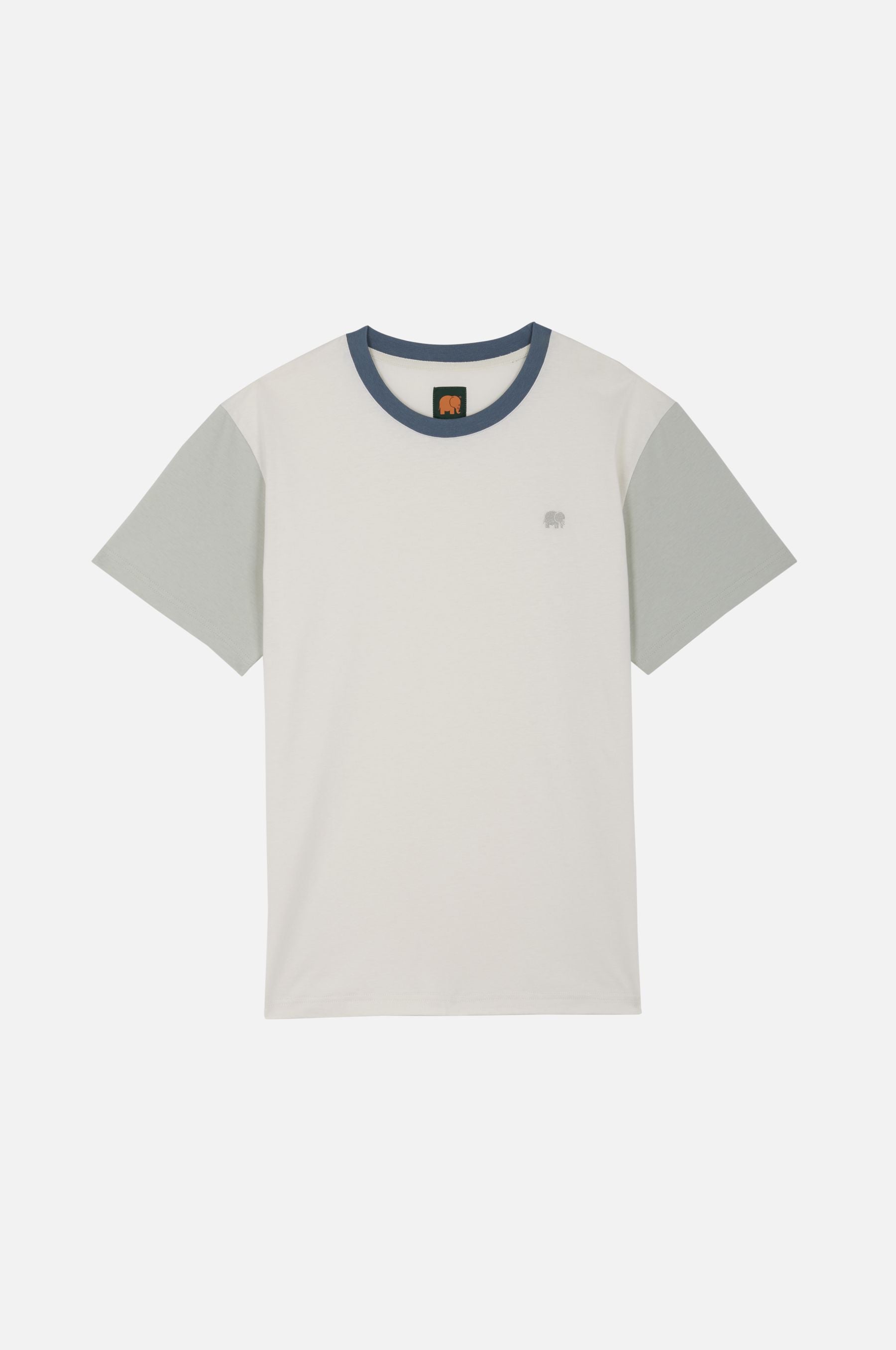 Crafted from 100% organic cotton jersey knit, this men's T-shirt offers a standard fit for everyday comfort and style. Sourced and made in Portugal, it embodies a commitment to quality and sustainability. The design draws inspiration from the Ocean Pine collection, blending tranquil greens, greys, and blues to evoke misty Mediterranean mornings. Featuring graphic color blocking, this piece provides a harmonious balance of modern aesthetics and serene tones.