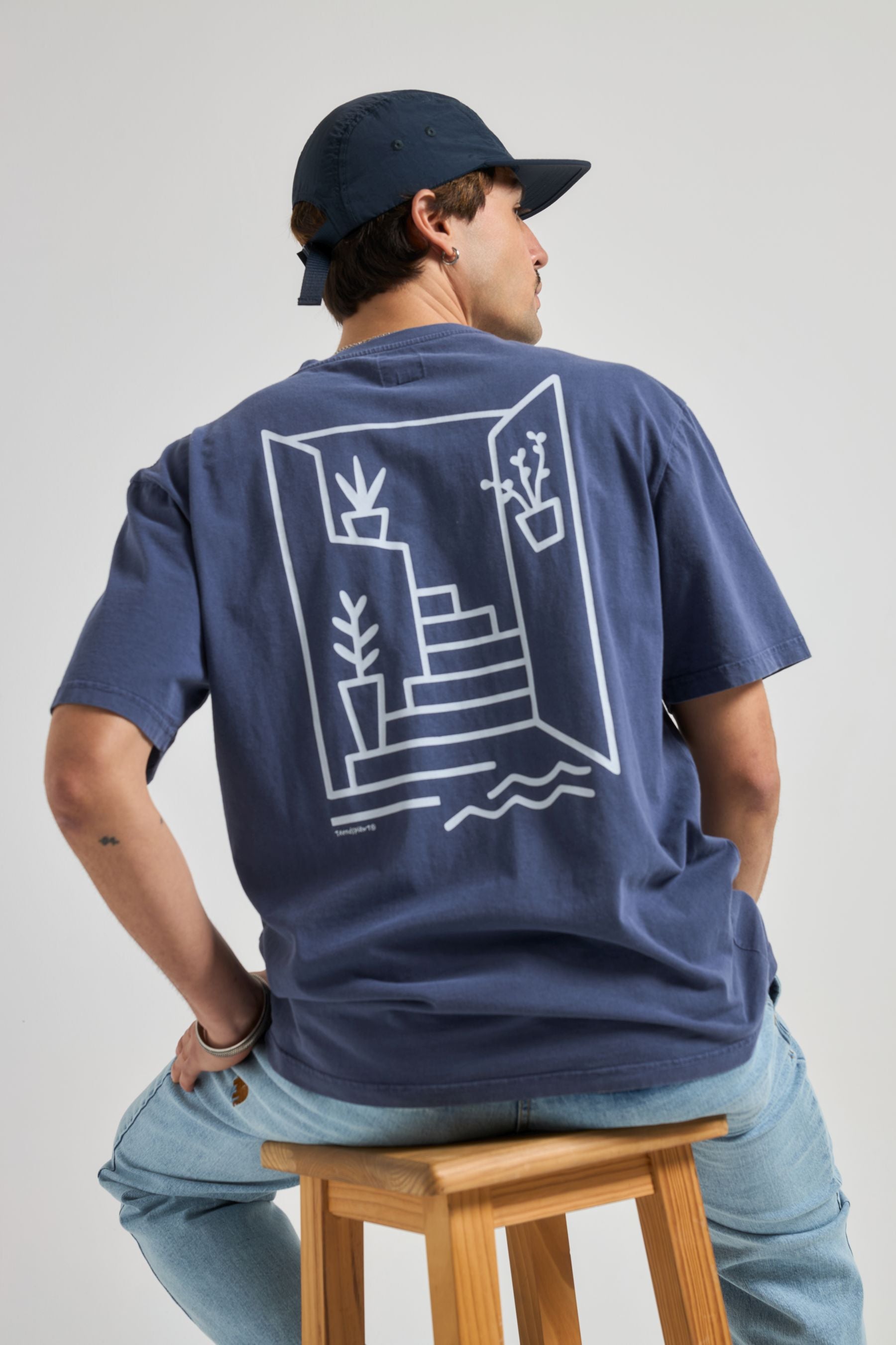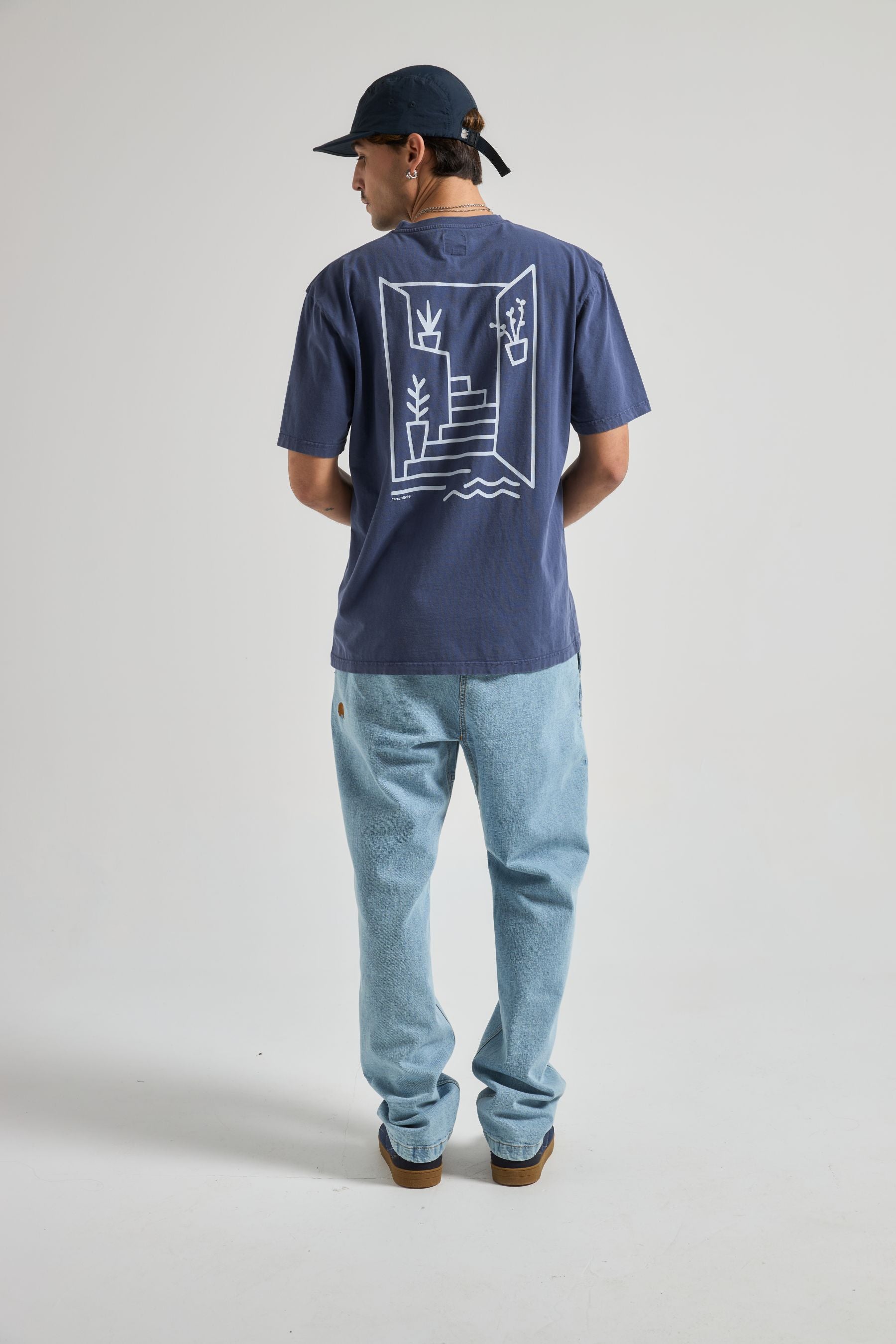 Crafted from 100% organic cotton jersey knit, this men's pigment t-shirt offers a comfortable standard fit with a relaxed feel. Inspired by the serene beauty of Altea, its sun-faded textures and soft tones capture the essence of this Mediterranean village. The pigment-dyed fabric, originating from Portugal, ensures vibrant color and durability, enhanced by our exclusive Sunwashed process. Sustainably made in Portugal, this t-shirt combines thoughtful design with a commitment to a lighter environmental impact.