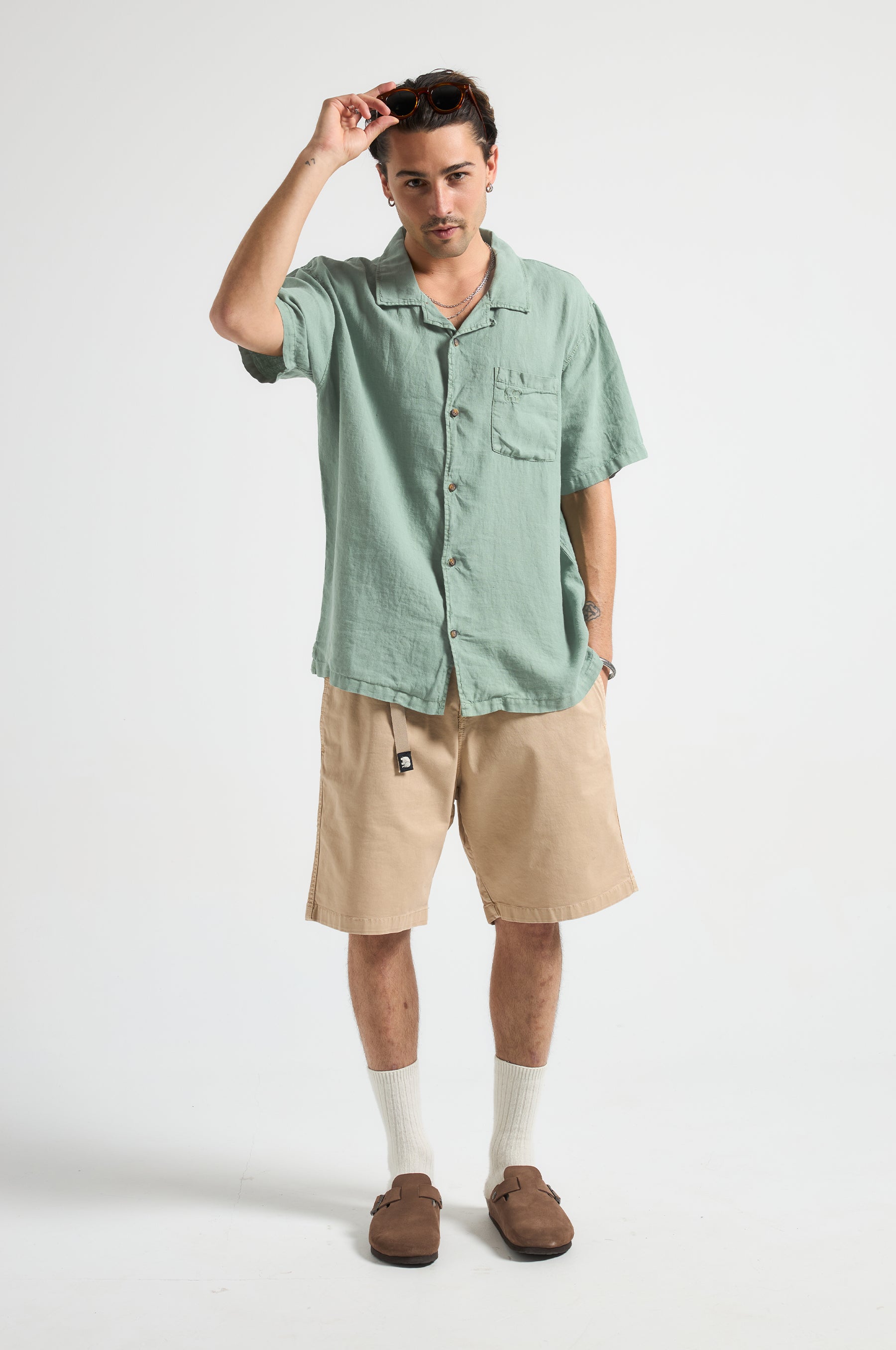 Cap Negret Linen S/S Camp Shirt Olive Shade