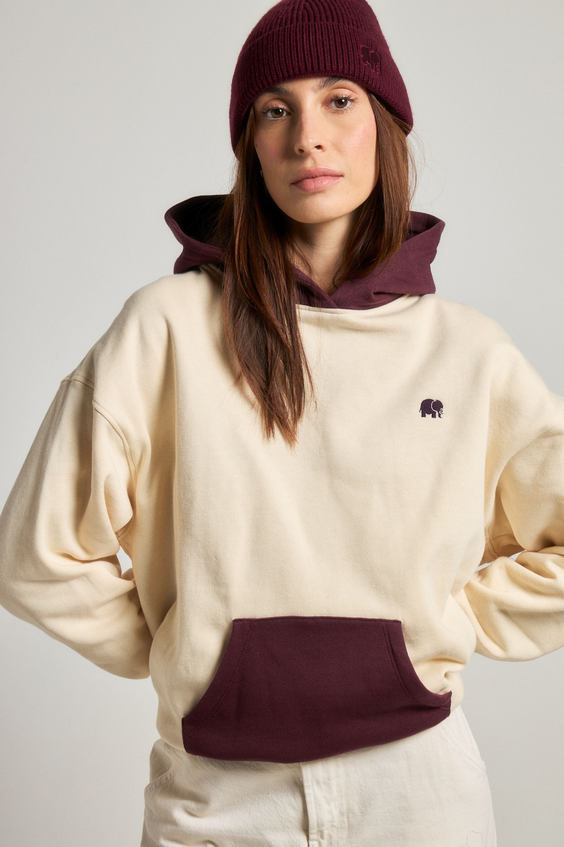 Inspired by the brand's ethos of creativity from leftovers, the Color Blocks design delivers a sophisticated and subtle color palette. The oversized fit provides a relaxed yet stylish silhouette, embodyed by the elephant motif, symbolizing strength and a wandering spirit.